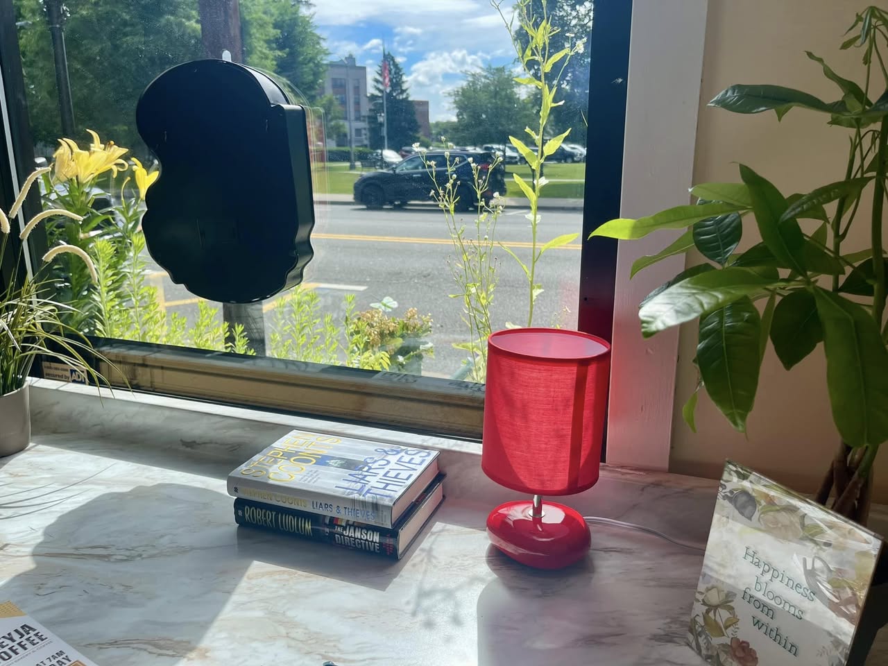 There is an inviting sense of coziness and beauty from the outside with there is a little table for two. You can sit there and take in the park view or choose a large room with comfortable seating in the back to relax.
